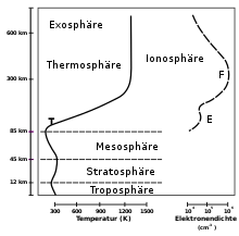 Innerhalb der Ionosphäre existieren drei lokale Ionisationsmaxima, weswegen sie in drei Bereiche unterteilt wird: die D-, die E- und die F-Schicht.