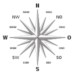 Die vier Himmelsrichtungen werden mit „N“ (Nord), „O“ oder „E“ (Ost, oder englisch East), „S“ (Süd) und „W“ (West) abgekürzt. Sie dienen der Orientierung mit der Sonne , dem Kompass oder der astronomischen Azimutmessung sowie der Angabe von Richtungen auf der Erdoberfläche, von Kursen oder von Windrichtungen. Als Grundrichtungen bilden sie auch den Raster in Landkarten.