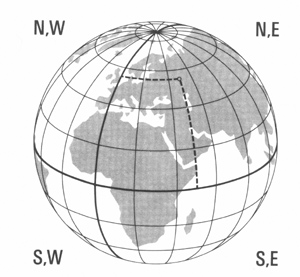 sich rechtwinklig schneidenden Längen- und Breitenkreisen.