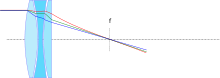 Die durchlaufenden Lichtstrahlen werden – abhängig von ihrer Wellenlänge – unterschiedlich stark von einer Linse gebrochen und treffen somit nicht genau auf demselben Punkt der Bildebene auf. Es entstehen Unschärfen und Farbsäume (siehe chromatische Aberration).