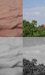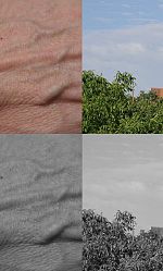 - Grün: Differenziert die in der Natur vorhandenen Grüntöne, rote Töne (Lippen beim menschlichen Porträt) werden abgedunkelt, allerdings auch Hautunreinheiten.