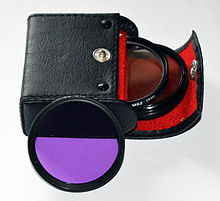 In der Fotografie werden Glasfilter vor das Objektiv geschraubt oder aufgesteckt, bzw. Kunststoffscheiben oder Folien (Gelatine oder auch Kunststoff) in einen Halter gelegt, in folgenden Farben: