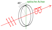 Trifft nun ein linear polarisierter Lichtstrahl, dessen Polarisationsrichtung um 45° zur kristalloptischen Achse gedreht ist, auf das Plättchen, dann entsteht zirkular polarisiertes Licht. Ist die Einstellung von 45° verschieden, so entsteht im allgemeinen Fall elliptisch polarisiertes Licht. Ursächlich hierfür ist, dass der Lichtstrahl in zwei senkrecht zueinander polarisierte Anteile aufgespalten wird, die sich am Ausgang des Plättchens um eine Viertelphase verschoben wieder überlagern. Damit entsteht für den resultierenden Feldvektor des austretenden Lichtstrahls eine Lissajous-Figur (Kreis oder Ellipse), die während jedes Schwingungszyklus eine vollständige Drehung der Polarisationsebene um 360° hervorruft. Man nennt ein λ/4-Plättchen daher auch Zirkularpolarisator. Umgekehrt verwandelt ein λ/4-Plättchen auch zirkular polarisiertes Licht in linear polarisiertes Licht.
