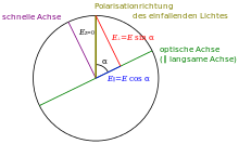 Dies entspricht einer Drehung der Polarisation um den Winkel 2α.