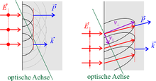 doppelbrechenden Kristall gebrochen. Sein elektrisches Feld schwingt im