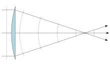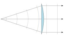 Trifft dieses Bündel auf eine Sammellinse und liegt der Ausgangspunkt im Brennpunkt der Linse, so beträgt die Vergenz unmittelbar vor der Linse