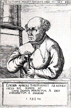 ![]() Paracelsus 1540. Kupferstich von Augustin Hirschvogel |