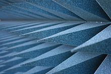 Zur Realisierung von Funkmesszellen müssen die Wände entweder hohen Absorptionsgrad besitzen oder möglichst große Oberfläche, wie im Bild gezeigt. Dann genügt auch geringerer Absorptionsgrad des Materials. Wegen der sehr unruhigen Oberfläche können auch kaum gerichtete Reflexionen auftreten.