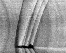 Technisch wird eine Überschallgeschwindigkeit in einer Lavaldüse hervorgerufen. In dem sich verengenden Eintrittsquerschnitt wird die Strömung bis auf die Schallgeschwindigkeit beschleunigt, soweit das kritische Druckverhältnis p0/pa erreicht wird. Im Diffusorteil findet eine weitere Beschleunigung der Strömung statt. Am Austritt des Diffusors zur Umgebung tritt ein Verdichtungsstoß auf, der nicht isentrop ist.