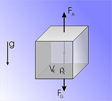 Nach dem Prinzip von Archimedes erfährt ein vollständig in einem Fluid (einer Flüssigkeit oder einem Gas) eingetauchter Körper eine Auftriebskraft, die gleich der Gewichtskraft des Volumens des verdrängten Stoffes ist. Um die zwei Unbekannten Dichte und Volumen zu bestimmen, sind zwei Messungen erforderlich.