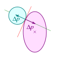 Zerlegt man die Bewegungsvektoren {\displaystyle {\vec {v}}_{1}=[x_{v_{1}},y_{v_{1}}]^{T}} und {\displaystyle {\vec {v}}_{2}=[x_{v_{2}},y_{v_{2}}]^{T}} nun in zwei Komponenten {\displaystyle {\vec {v}}_{t}=[x_{t},y_{t}]^{T}} parallel zur Tangente und {\displaystyle {\vec {v}}_{z}=[x_{z},y_{z}]^{T}} orthogonal dazu, so kann man den zweidimensionalen Stoß zu einem eindimensionalen vereinfachen. Es gilt dann die obige Formel, jedoch nur für die Komponenten in Zentralrichtung.