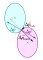 Die neuen Geschwindigkeitsvektoren \vec {v'}_{1} und \vec {v'}_{2} werden dann durch Vektoraddition der Vektoren {\displaystyle {\vec {v}}_{t1}} bzw. {\displaystyle {\vec {v}}_{t2}} und {\displaystyle {\vec {v'}}_{z1}} bzw. {\displaystyle {\vec {v'}}_{z2}} berechnet: