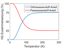 Im Allgemeinen ist Wasserstoff ein Gemisch aus oH2 und pH2 (bzw. aller vier Kernspin-Eigenzustände); die temperaturabhängige Gleichgewichtsverteilung genügt dabei der Boltzmann-Statistik. Da die Energieaufspaltung zwischen den Kernspinzuständen im Vergleich zu den Rotationsenergien vernachlässigbar klein ist, entscheiden Letztere effektiv über den energetischen Grundzustand des H2-Moleküls. Daher ist pH2 die energetisch günstigere und oH2 die energiereichere Form. Das temperaturabhängige Gleichgewichtsverhältnis von oH2/pH2 wird beschrieben durch