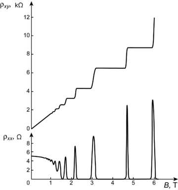 Bei hinreichend tiefer Temperatur und starkem Magnetfeld nimmt der Hall-Widerstand jedoch unabhängig vom Material einen der Plateau-Werte