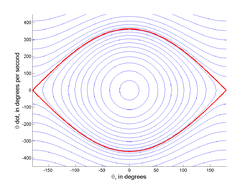 Ein einfaches mathematisches Pendel hingegen hat zwar periodische Trajektorien, aber keinen Grenzzyklus. Das sieht man in nebenstehender Abbildung daran, dass sich keine Trajektorien an die Zyklen annähern bzw. von ihnen entfernen, d.h. die Zyklen nicht isoliert auftreten. Nicht isoliert bedeutet hier, dass in jeder Umgebung eines Zyklus wieder andere Zyklen liegen.