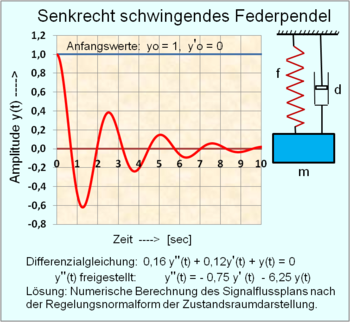 - Differenzialgleichung der Schwingbewegung mit Signaleingang u(t) und Signalausgang y(t):