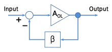 {\displaystyle G(s)={\frac {A_{OL}}{1+\beta A_{OL}}}={\frac {b}{s-a+\beta \cdot b}}}