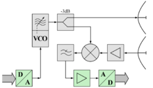 Ein zweiter Abwärtsmischer setzt das Echosignal in das Basisband um. Eine weitere Möglichkeit ist, die Empfangssignale direkt auf der Zwischenfrequenz in einem schnellen Analog-Digital-Umsetzer zu digitalisieren und die Abwärtsmischung digital durchzuführen.