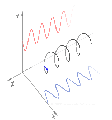 Bei der zirkularen Polarisation rotiert der Feldstärkevektor rechts- oder linksdrehend senkrecht zur Ausbreitungsrichtung Z (rechtsdrehende bzw. linksdrehende Zirkularpolarisation). Eine zirkulare Polarisation entsteht z.B. durch zwei um 90° versetzte und um 90° phasenverschoben gespeiste, linear polarisierte Antennen. Sind die Amplituden der beiden linearen Komponenten nicht gleich groß, entsteht eine elliptische Polarisation.