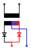 Heute verwendet man häufig Doppeldioden (Silizium- oder Schottkydioden) mit gemeinsamer Kathode. Sie bestehen aus einem Chip, der zwei Dioden enthält und dessen Rückseite, als gemeinsame Kathode, auf eine Kühlfahne gelötet ist.