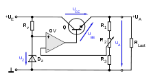 Eine weitergehende Glättung erfolgt mit einer Spannungsregelung, die Schwankungen der Ausgangsspannung ausgleicht. Diese elektronische Stabilisierung beseitigt die Restwelligkeit der Ausgangsspannung fast vollständig, wodurch auch hohe Ansprüche an die Qualität der Gleichspannung (z.B. bei Labornetzteilen) befriedigt werden können.