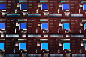 - Die Herstellung der einzelnen Bauelemente auf einem Wafer, das sogenannte