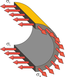 wobei im Vergleich zur Tangentialspannung größere Abweichungen infolge der