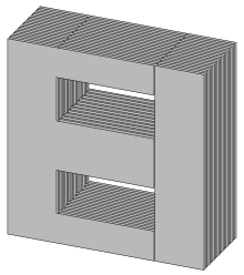 Bei lamellierten Eisenkernen wird von einem geblechten Kern (aus Transformatorblechen) oder einem Eisenpaket gesprochen. Die voneinander isolierten Bleche sind bei Wechselfeldern zur Vermeidung von Wirbelstromverlusten erforderlich.