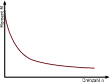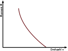 Das Drehmoment einer Reihenschlussmaschine ist stark drehzahlabhängig (Reihenschlussverhalten). Bei geringer Drehzahl ist die Gegeninduktionsspannung der Ankerwicklung gering. Daher fließt ein großer Strom durch Anker und Erregerwicklung, und es kann ein großes Drehmoment aufgebracht werden. Mit der Drehzahl steigt die Gegeninduktionsspannung. Strom und Erregung sinken und damit auch das Drehmoment der Maschine.