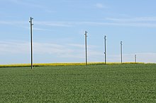 Mittelspannungs-Freileitungsmast für 20 kV, wie er in ländlichen Regionen üblich ist. -