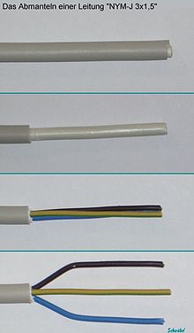 die leitenden Kupferdrähte werden sichtbar, (braun = Außenleiter)