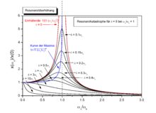 - In der unteren Schaltung wird nur ein schmaler Bereich um die Resonanzfrequenz ω0 des Schwingkreises verstärkt. Nur hier ist der Parallelschwingkreis so hochohmig, dass mit ausreichender Verstärkung zu rechnen ist. Bei tieferen Frequenzen wirkt die Spule als Kurzschluss, bei höheren Frequenzen der Kondensator. Verstärkungsfaktor und Bandbreite hängen vom Gütefaktor des Schwingkreises ab.