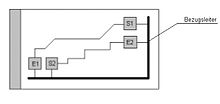 Die Bauteile auf einer Platine sind wie in nebenstehenden Bild gezeigt angeordnet. Sender und Empfänger sind über Signalleitungen miteinander verbunden. Außerdem nutzen alle Bauteile den gleichen Bezugsleiter. Die Induktivität des Bezugsleiters beträgt 260 nH. S1 schaltet einen Strom von 20 mA in 10 ns. Der daraus resultierende Spannungsabfall am Bezugsleiter berechnet sich näherungsweise zu: