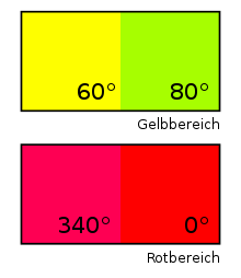 - Eine weitere Möglichkeit baut auf den virtuellen Farben auf, die durch den Abbau des Sehfarbstoffes entstehen. Dieser Vorgang macht sich im Sukzessivkontrast (Nachbildkontrast) bemerkbar. Hieraus lassen sich Komplementärfarben ermitteln, die in einem Farbkreis gegenüber darzustellen sind.