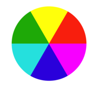 - Weiterhin gibt es neuronale Prozesse, die die Sinneseindrücke der Zapfen (Rot, Grün, Blau) in eine Zwei-Kanal-Farbinformation umwandeln. Es sind die Rot-Grün- und Gelb-Blau-Kanäle der Gegenfarbentheorie. Aufgrund dieser Tatsache lassen sich Kreise mit den vier Primärfarben Rot, Gelb, Grün und Blau konstruieren.