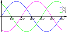 Drehstrommotoren werden mit Dreiphasenwechselstrom bzw. „Drehstrom“ betrieben. Diese Stromart führt in drei getrennten Leitern jeweils eine eigene periodisch wechselnde Spannung, deren zeitliche Abläufe gegenüber den anderen beiden Leiterspannungen um jeweils 120° vor- bzw. nachlaufend versetzt sind.