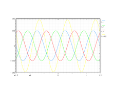 Das ergibt das übliche Bild von 3 Drehstromphasen. Wird nun anstelle einer