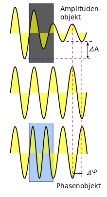 Mehr oder weniger klare und farblose Objekte haben nur geringe Wirkung auf die Amplitude des einfallenden Lichtes und erscheinen nur dann sichtbar, wenn sie ausnahmsweise einen sehr starken Unterschied im Brechungsindex im Vergleich zur Umgebung aufweisen. In der Regel weisen solche Objekte einen sehr schlechten Kontrast auf, da das menschliche Auge Phasenunterschiede als solche nicht wahrnehmen kann. Da solche Objekte im Gegensatz zu Amplitudenobjekten keinen wesentlichen Unterschied in der Amplitude des einfallenden Lichtes, sondern lediglich einen Unterschied in der Phase erzeugen, nennt man sie auch Phasenobjekte.