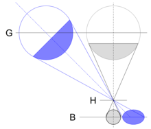 Die Strahlen vom kreisförmigen Rand einer Kugel, deren Mittelpunkt sich nicht auf der optischen Achse befindet, werden bei einer optischen Abbildung zwangsläufig bei unterschiedlichen Objektweiten erfasst und haben in der Abbildung daher verschiedene Abbildungsmaßstäbe, die zu einer geometrischen Verzerrung der Kreisform in der Abbildung führen. Die näher an der optischen Achse liegenden Objektpunkte liegen weiter entfernt als die Objektpunkte, die weiter von der optischen Achse entfernt sind. Deswegen ist der Abbildungsmaßstab umso größer, je weiter sich die Bildpunkte am Bildrand befinden. Insbesondere bei der Verwendung von Weitwinkelobjektiven kann dies wegen der großen Bildwinkel zu deutlich erkennbaren Deformationen in den Abbildungen führen.