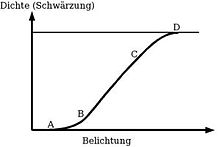 Die Dichtekurve beschreibt den Zusammenhang zwischen Belichtung (konkreter oft Belichtungszeit) und der Reaktion des lichtempfindlichen Materials (Film, Sensor).