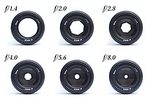 - Manuelle Scharfstellung: Die hohe Lichtstärke kommt bei Spiegelreflexkameras der Helligkeit des Sucherbildes zugute und erleichtert das Scharfstellen. Zudem geht die größere Blendenöffnung mit einer geringeren Schärfentiefe einher, wodurch die Lage der Schärfeebene im Sucher besser beurteilt werden kann. Einstellhilfen für das manuelle Scharfstellen, wie zum Beispiel Schnittbildindikatoren, funktionieren bei lichtschwachen Objektiven (1:5,6 oder weniger) nur noch eingeschränkt oder gar nicht mehr. Kameras mit elektronischem Sucher oder Live-View auf einem Bildschirm können ein elektronisch aufgehelltes Bild anzeigen, das gegebenenfalls mit Hilfe einer Softwarelupe sogar vergrößert dargestellt werden kann. Bei Kameras, bei denen die Scharfstellung ohne das Objektiv erfolgt, ist dieser Aspekt ohne Bedeutung.