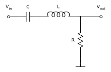 Der einfachste Bandpass mit Schwingkreis ist ein Bandpass 2. Ordnung, wie er als elektrisch passiver Filter in nebenstehender Abbildung skizziert ist. Bandpässe 2. Ordnung weisen abseits des Durchlassbereichs eine Flankensteilheit von 20 dB pro Dekade auf und die Übertragungsfunktion mit den Werten der Bauelemente R, L und C lautet: