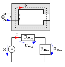 In Bezug auf magnetische Kreise wird der Begriff Spannungsteiler auch verwendet, um die Aufteilung der magnetischen Spannung (Durchflutung) entlang von magnetischen Widerständen zu beschreiben.