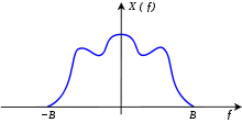 Der belegte Frequenzbereich wird mit dem Wert der Bandbreite B ausgedrückt. Reelle Basisbandsignale weisen sowohl positive als auch negative spektrale Anteile auf; die Bandbreite erstreckt sich daher symmetrisch von −B bis +B. Digitale Modulationsarten werden dagegen meist im komplexen Basisband verarbeitet, das sich asymmetrisch von −B/2 bis +B/2 erstreckt.