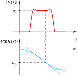 (englisch group delay) eines schmalbandigen Signals durch ein LZI-System (z. B. durch ein elektronisches Filter oder einen