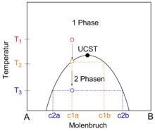 Gemische, deren Phasendiagramme Mischungslücken aufweisen, liegen innerhalb der Mischungslücken in Form koexistierender Phasen unterschiedlicher stofflicher Zusammensetzung vor. Die im Gleichgewicht stehenden Zustände, die die koexistierenden Phasen und deren stoffliche Zusammensetzung repräsentieren, liegen auf der Binodalen und werden durch Konoden verbunden.