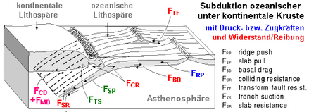 Der Prozess der Ozeanbodenspreizung wird nach heutigem Wissen durch Konvektionsströme im Erdmantel angetrieben. Die jeweils benachbarten Lithosphärenplatten streben dabei typischerweise mit Geschwindigkeiten von einigen Millimetern bis Zentimetern im Jahr auseinander (Spreizungsrate).