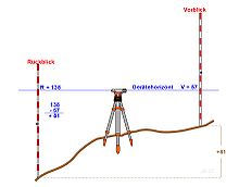 Die Ablesung an der Nivellierlatte auf dem bekannten Punkt wird Rückblick genannt, die Ablesung auf dem neuen Punkt heißt Vorblick. Die Ablesungen werden subtrahiert, Rückblick minus Vorblick, um den Höhenunterschied zu erhalten. Ein positiver Höhenunterschied bedeutet dabei, dass das Gelände in Nivellementrichtung ansteigt, ein negativer, dass das Gelände abfällt. Auf dem Zielpunkt angekommen werden die Höhenunterschiede aller Abschnitte addiert um den Höhenunterschied zwischen Ausgangspunkt und Zielpunkt zu erhalten.