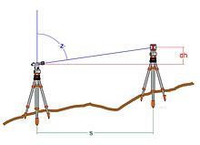 u.a.) der Zenitwinkel z und die Schrägstrecke s' zum