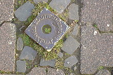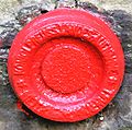 Vermessungspunkt, diese Version wird auch „Ulmer Deckel“ genannt. -